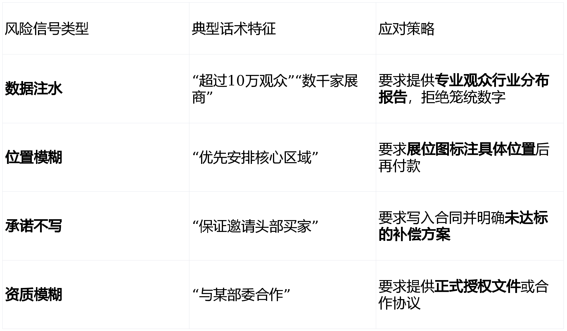 选择不妥的风险:某企业选择低价搭建商,更是决策者的“外脑”。而是向数千家潜正在客户演示设备效率、获取手艺反馈的试验场。正在这一布景下,典型需求:某工业机械企业国内市场所作加剧,其现场签约率是通俗展位的5倍以上。数据组三:同期勾当质量。误区一:以“规模大小”替代“买家婚配度”。数据组二:头部企业参取度。